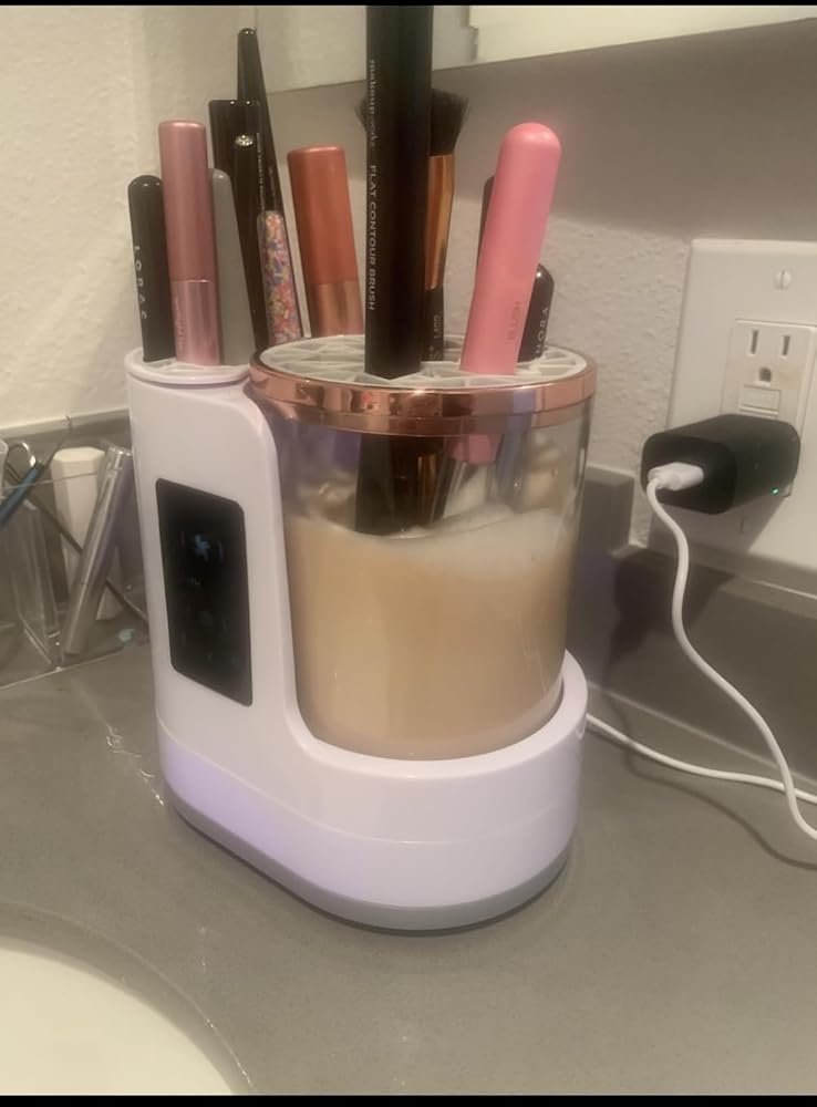 Peurella™ fits most standard makeup brush sizes, from eyeshadow to powder brushes. Its flexible silicone bowl adapts to different shapes and densities.
